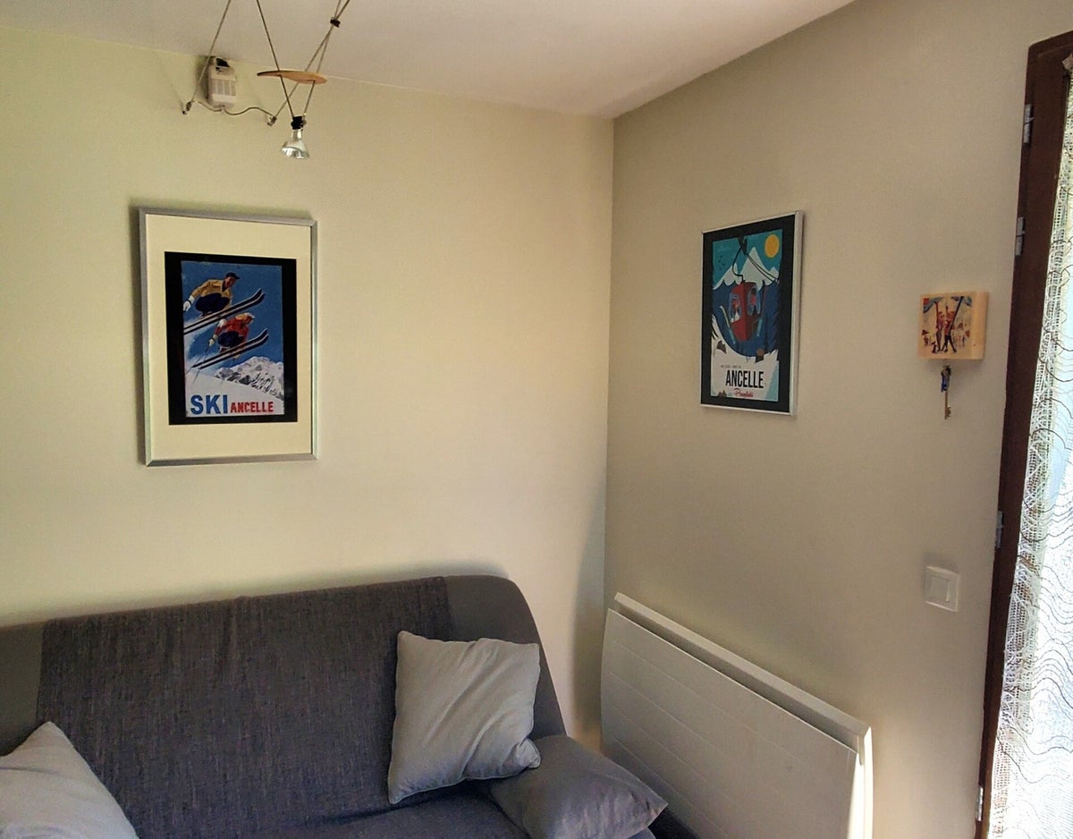 Il est situé en rez de jardin d'un chalet individuel, dans un petit lotissement très calme, à 400m du centre du village d'Ancelle (1350 m - 1800 m d'altitude) et des pistes de ski alpin (départ ski de fond à 100m du chalet).