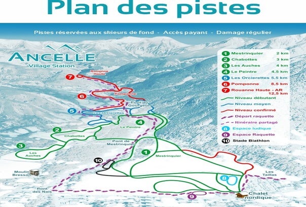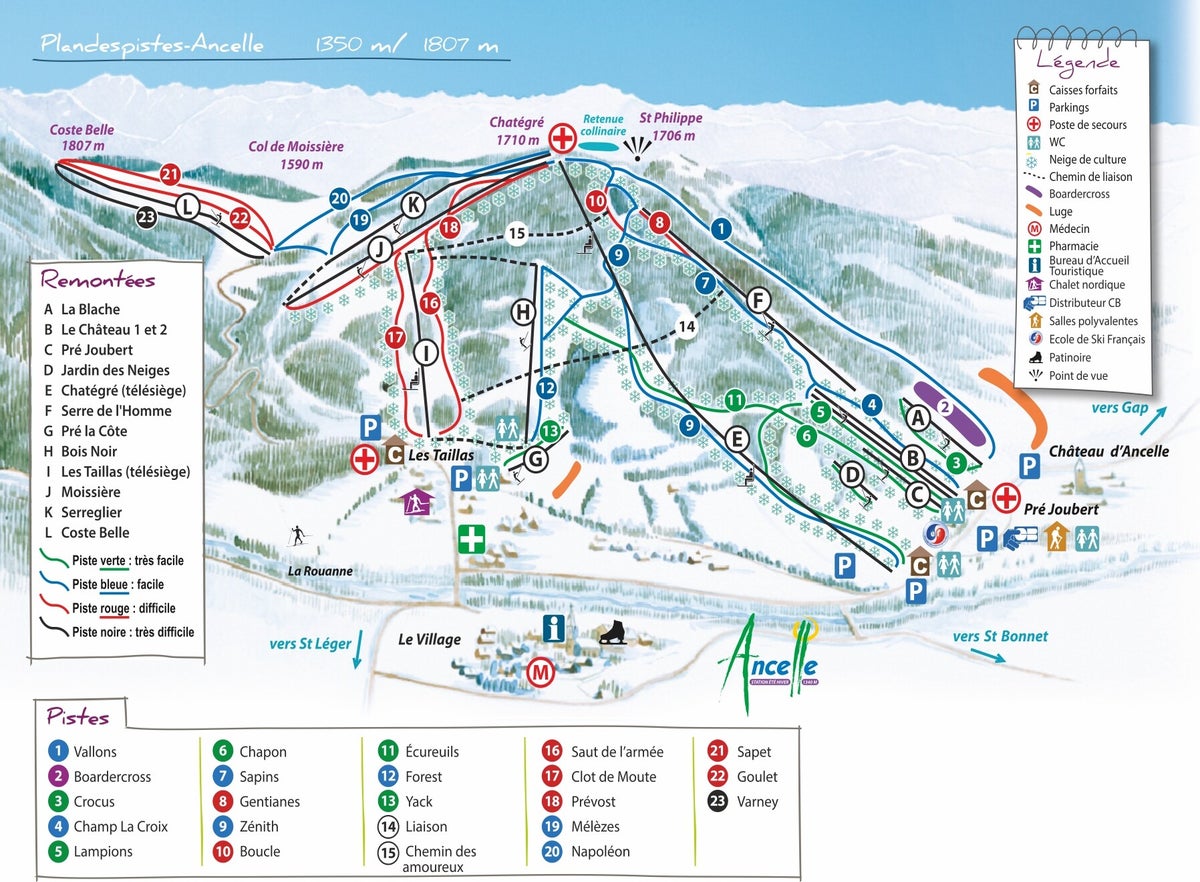 Le domaine skiable est la fierté d'Ancelle. Jouissant d’une position géographique avantageuse, le cadre naturel vous offre des pistes exposition plein nord pour un enneigement maximum. De plus, une orientation plein sud du bas des pistes vous promet du soleil tout au long de la journée. Le front de neige est orienté de telle façon qu’il vous permet de profiter de la vue dégagée tout en dégustant quelques spécialités locales. Rien de mieux pour garder un œil sur les enfants ou pour admirer la couleur changeante des arbres bordant le domaine avec la nuit tombante.
